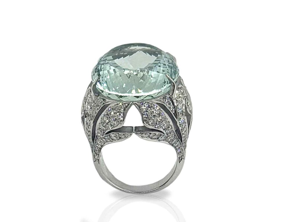 Anello in oro bianco con Acquamarina e Diamanti, simbolo di puro lusso
