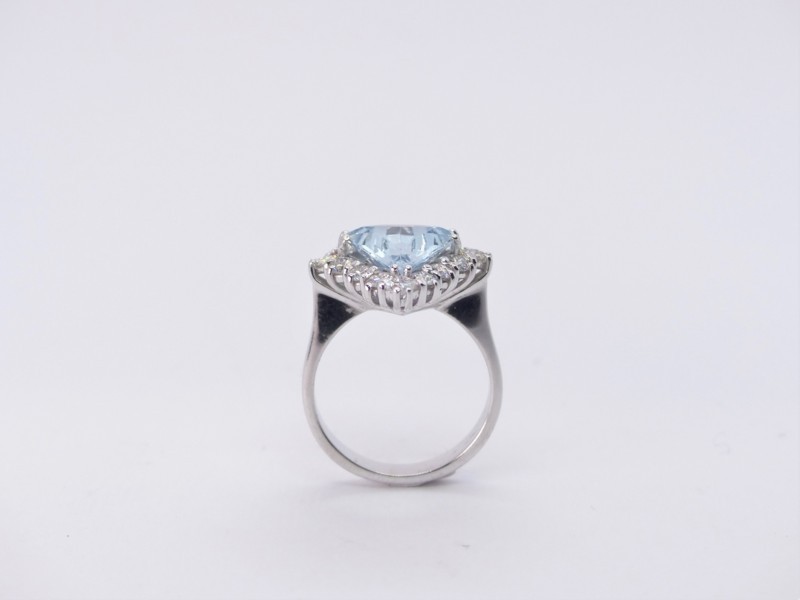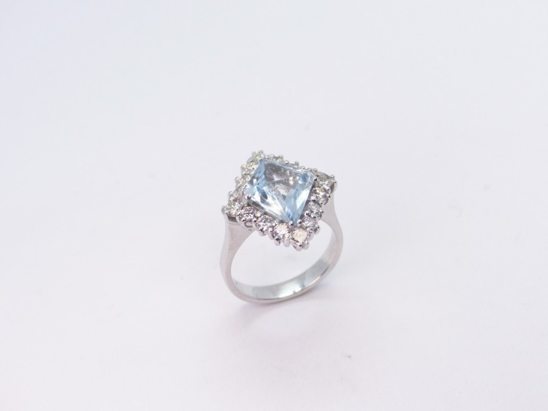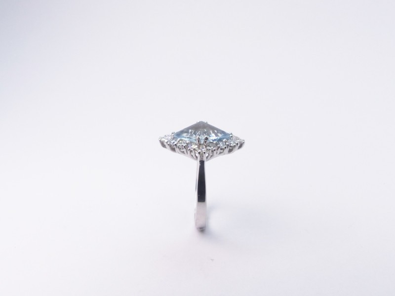 Anello in oro bianco con un’acquamarina taglio a rombo