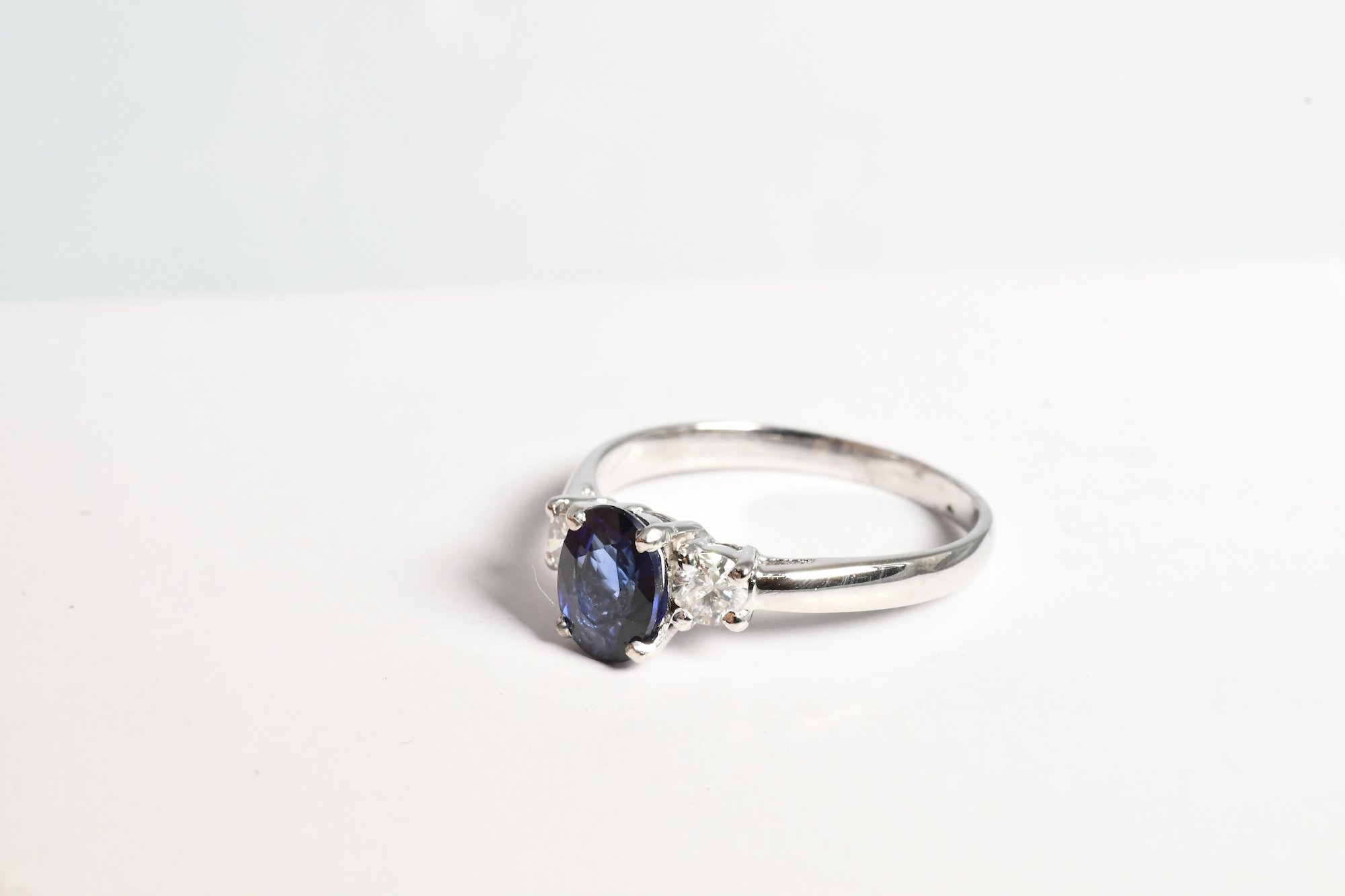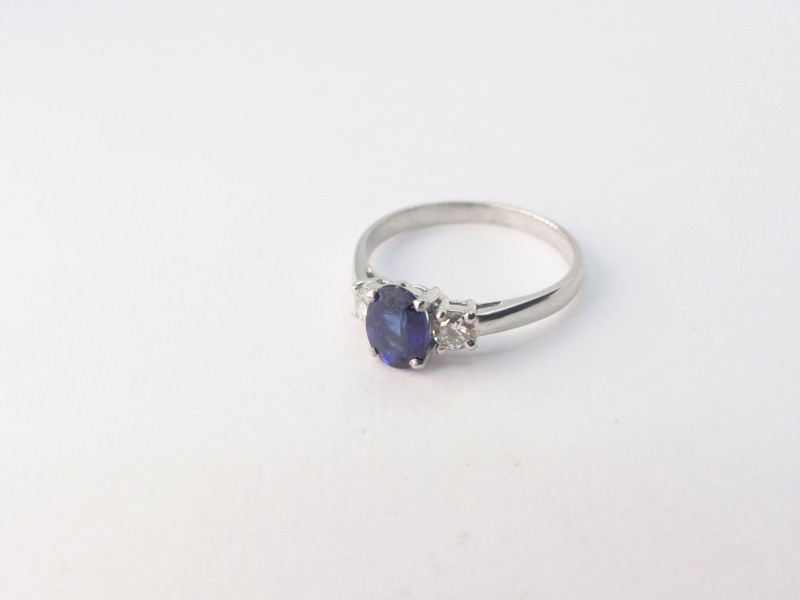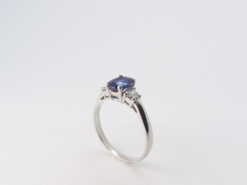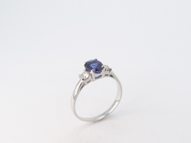 Anello in oro bianco con uno zaffiro blu ovale