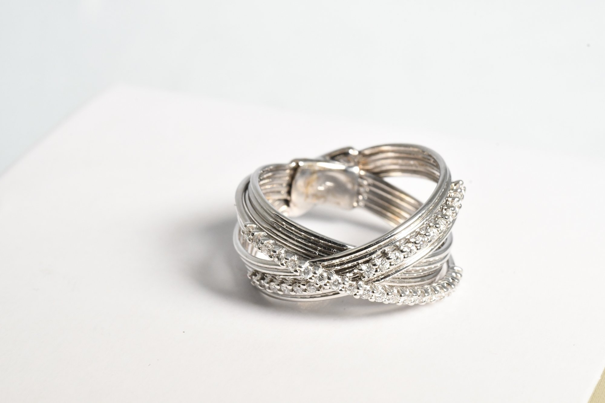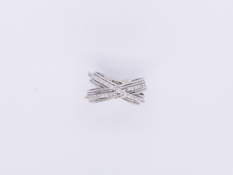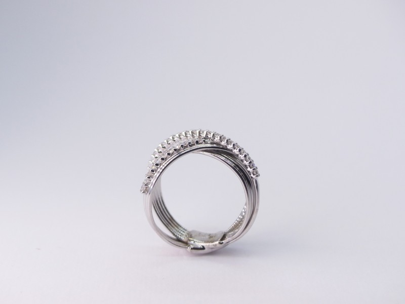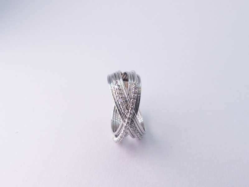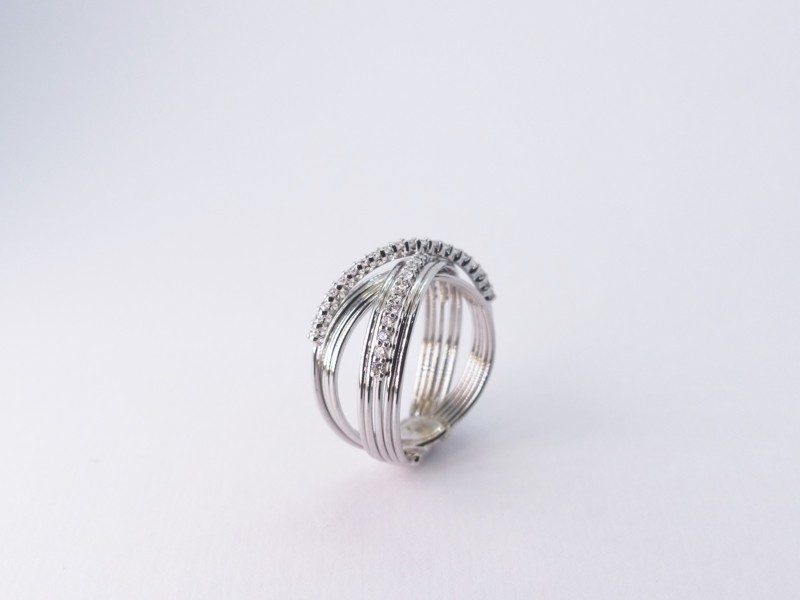 Anello in oro bianco a due fedi rigate con
