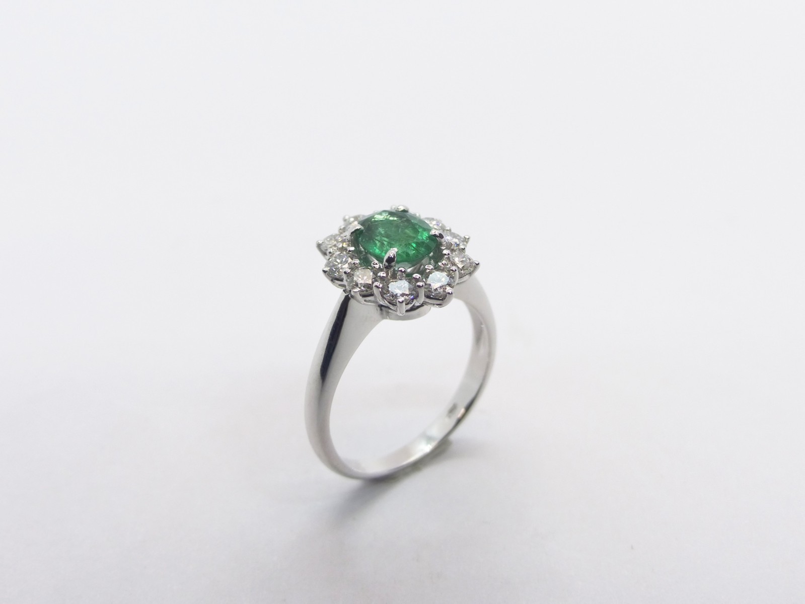 Anello in Oro bianco con uno Smeraldo taglio ovale