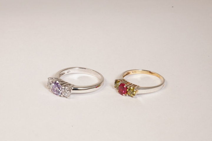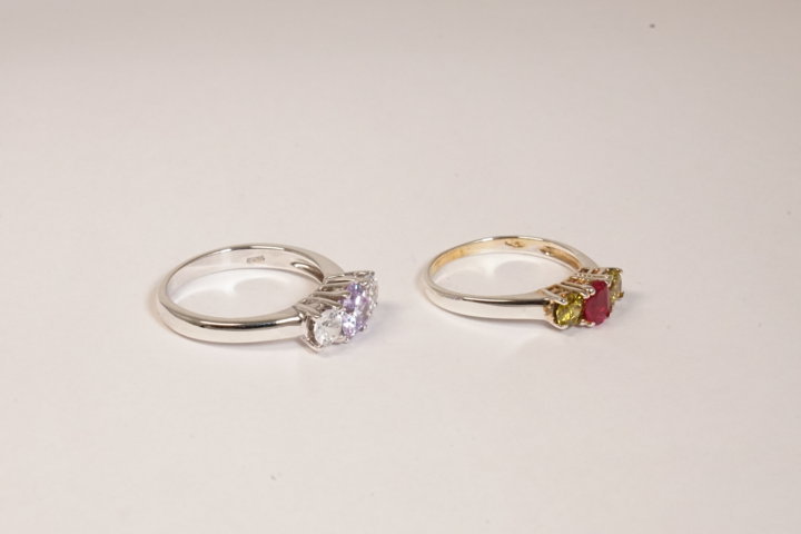 ametista e zirconi, citrini e rubino sintetico