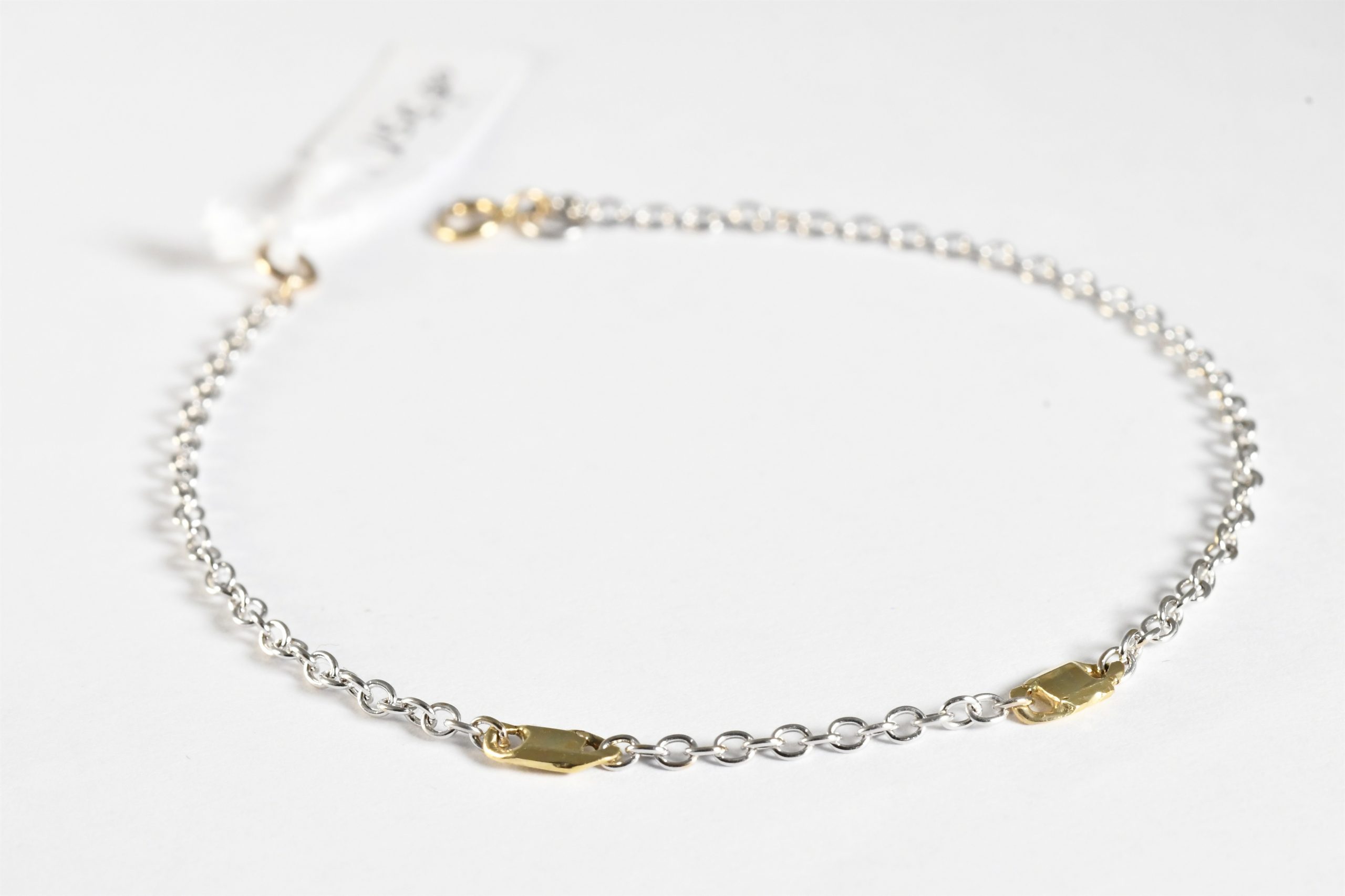Bracciale con catenina in oro giallo e fiori in oro bianco 18 carati gr.3,30 lunghezza totale 18 centimetri