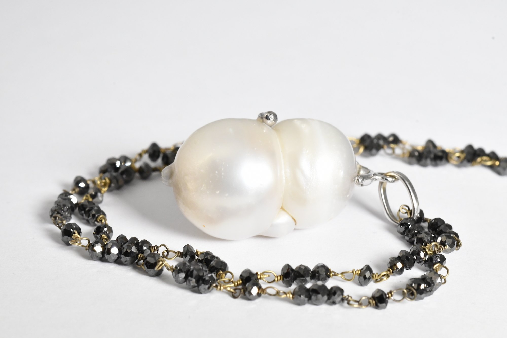 Collana con diamanti neri e perlaDisponibilità: 1 disponibili