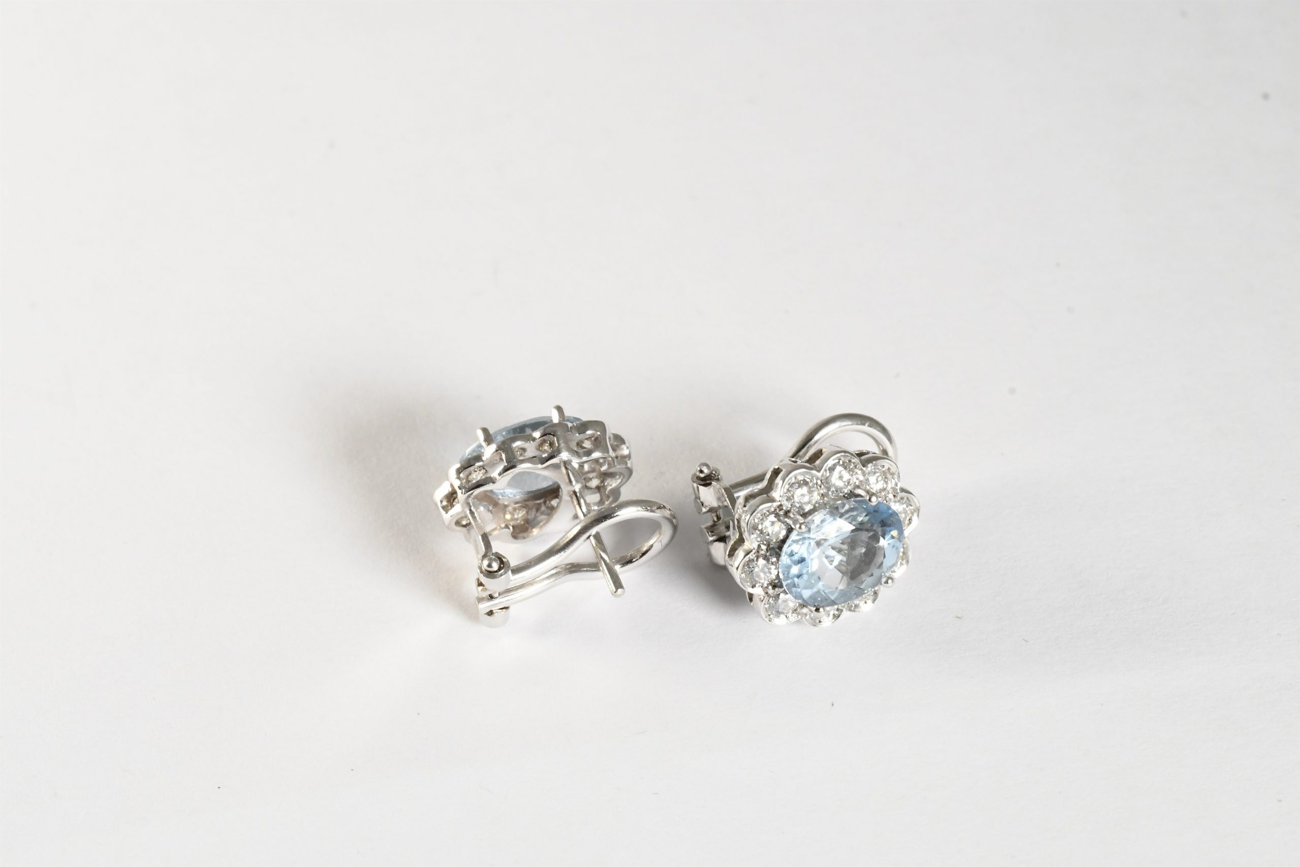 - orecchini in oro bianco 18 carati gr.5.20 acqua marina ovale naturale carati 3.03 e contorno di diamanti taglio brillante carati 0.58 colore G/H purezza vs