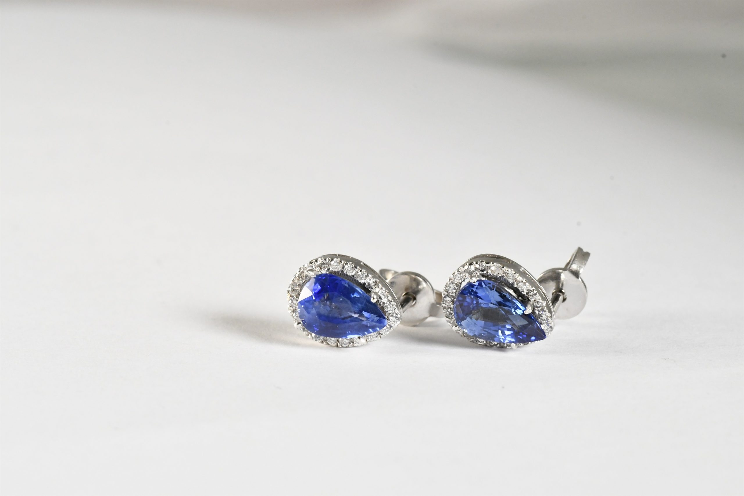 - Zaffiri naturali a goccia carati 1.80 e diamanti taglio brillante carati 0.30 colore H purezza vs