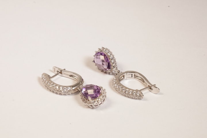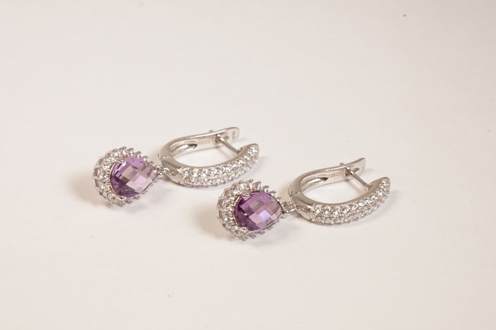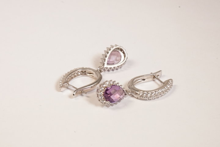 - pendente a forma di goccia con ametista e contorno di zirconi