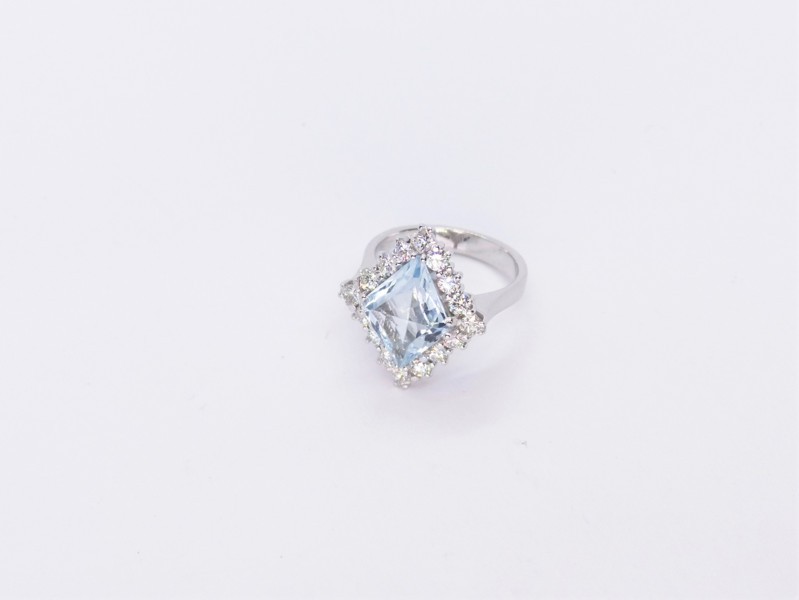 Anello in oro bianco con un’acquamarina taglio a rombo